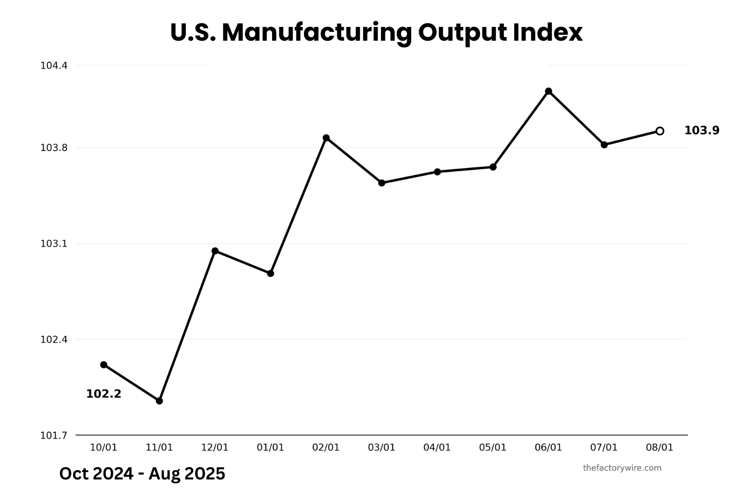 Insight: Manufacturing output increased by 1.7% from October 2024 to August 2025, indicating strengthening production activity across the sector.